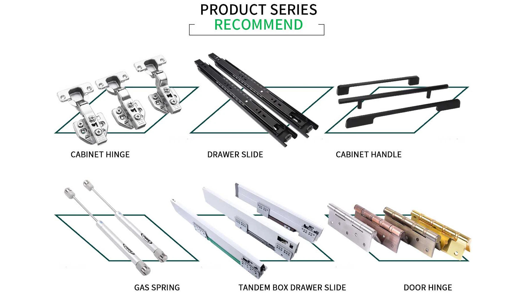 ผลิตภัณฑ์หลัก:บานพับเฟอร์นิเจอร์, ลิ้นชักสไลด์, มือจับตู้, กล่องตีคู่, สปริงแก๊ส